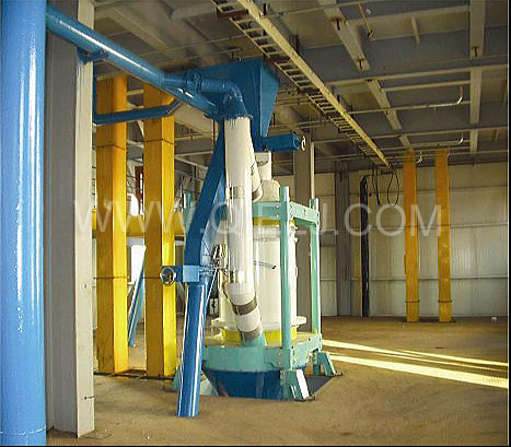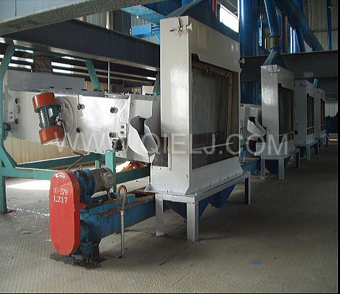清理工序:采用磁選器去除鐵雜;振動清理篩去除大雜、秸稈等;比重去石機去除石子和磚塊等重雜;除塵系統(tǒng)采用單聯(lián)剎克龍以及離心風(fēng)機進(jìn)行有效的除塵,以保證車間衛(wèi)生和清理輕雜。