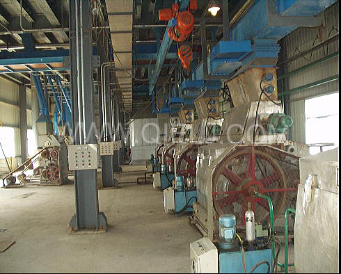軋胚工序:采用液壓緊輥軋胚機,較好的破壞油料細(xì)胞組織,以保證軋坯片薄而均勻,有韌性,粉末度小。