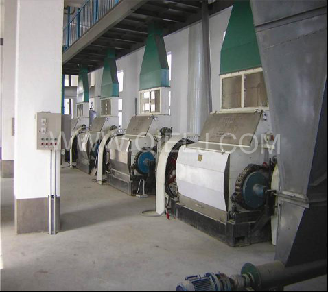 7.我公司還在軋胚工序的后面加上大豆膨化工序,對豆胚進(jìn)行膨化,以進(jìn)一步破壞油料細(xì)胞的結(jié)構(gòu),大大提高產(chǎn)量,得到受飼料廠家歡迎的膨化粕。